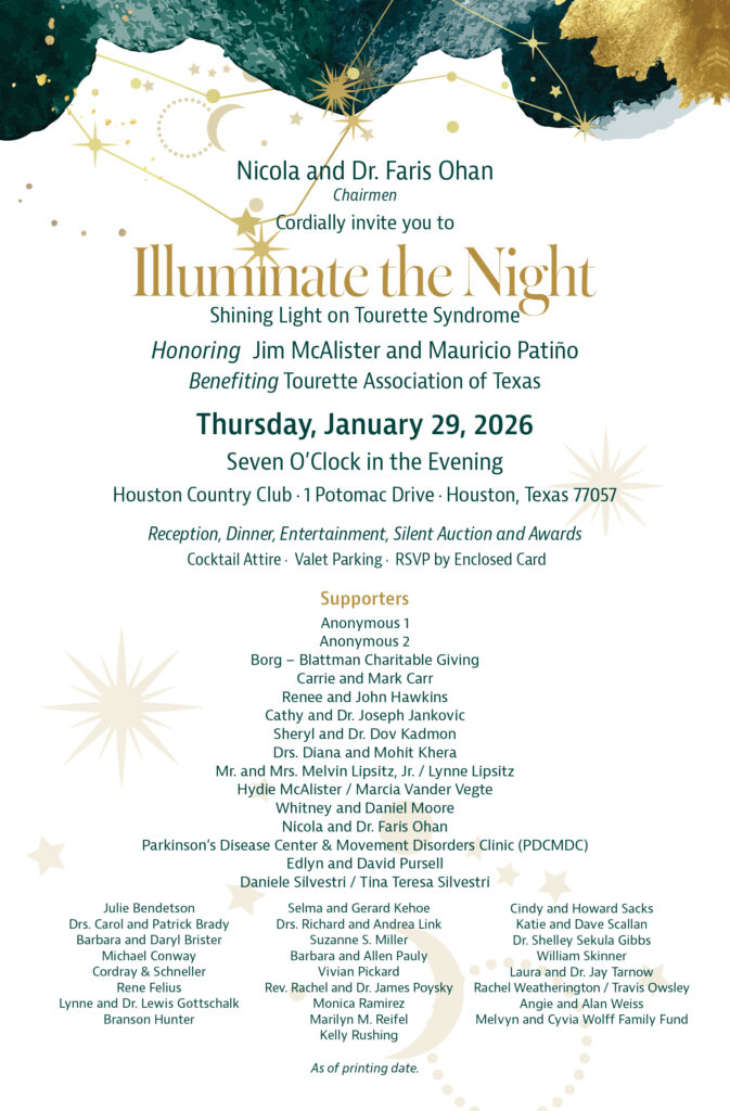 Illuminate the Night, Shining Light on Tourette Syndrome – The Tourette Texas 2026 Gala & Silent Auction